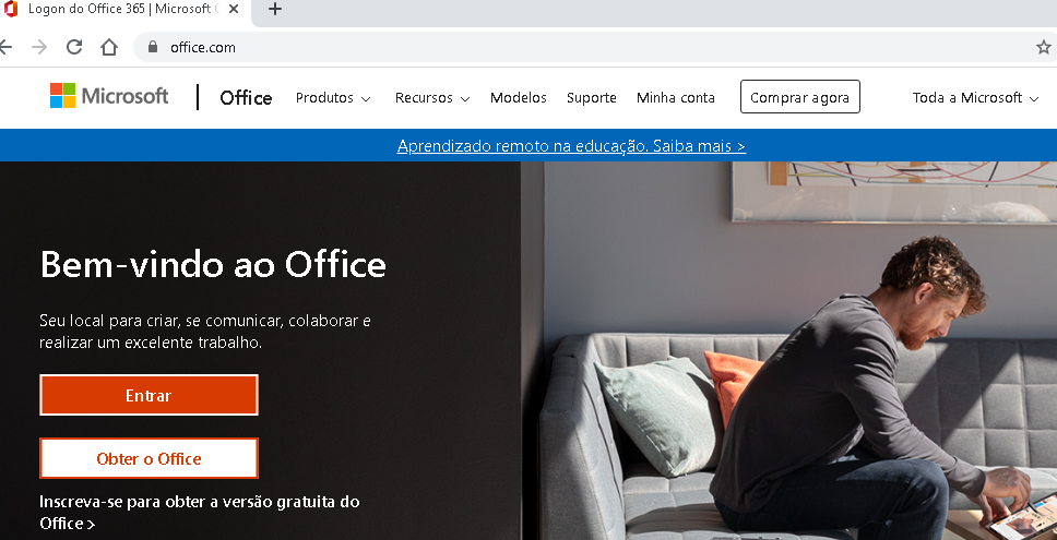 Passo 1: Acessar o site www.office.com e em seguida clicar em “Entrar”