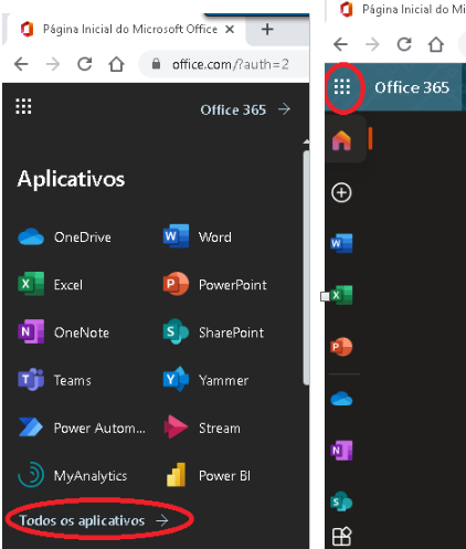 Passo 3: Acessar a barra lateral esquerda de aplicativos disponíveis para uso