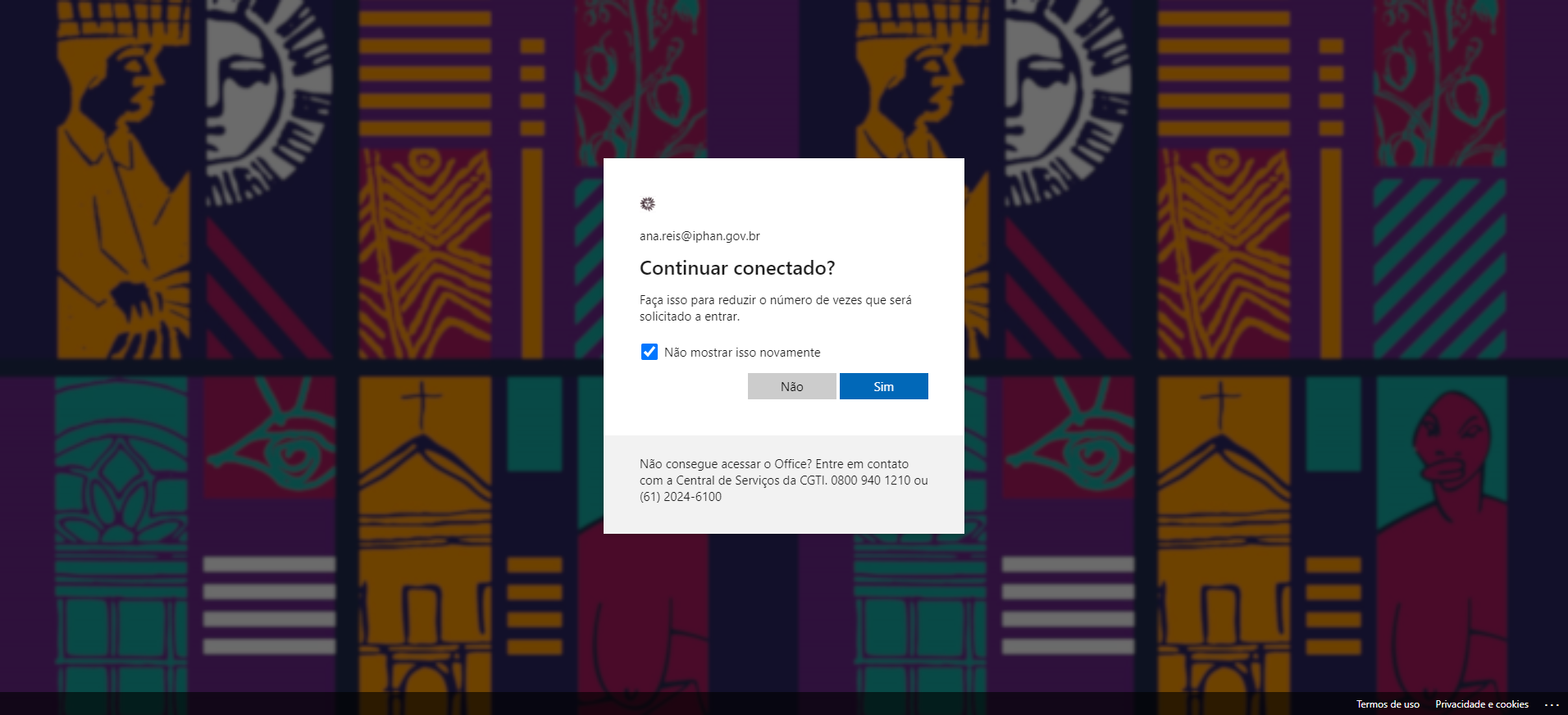 Informe o seu e-mail@iphan.gov.br e clique em avançar