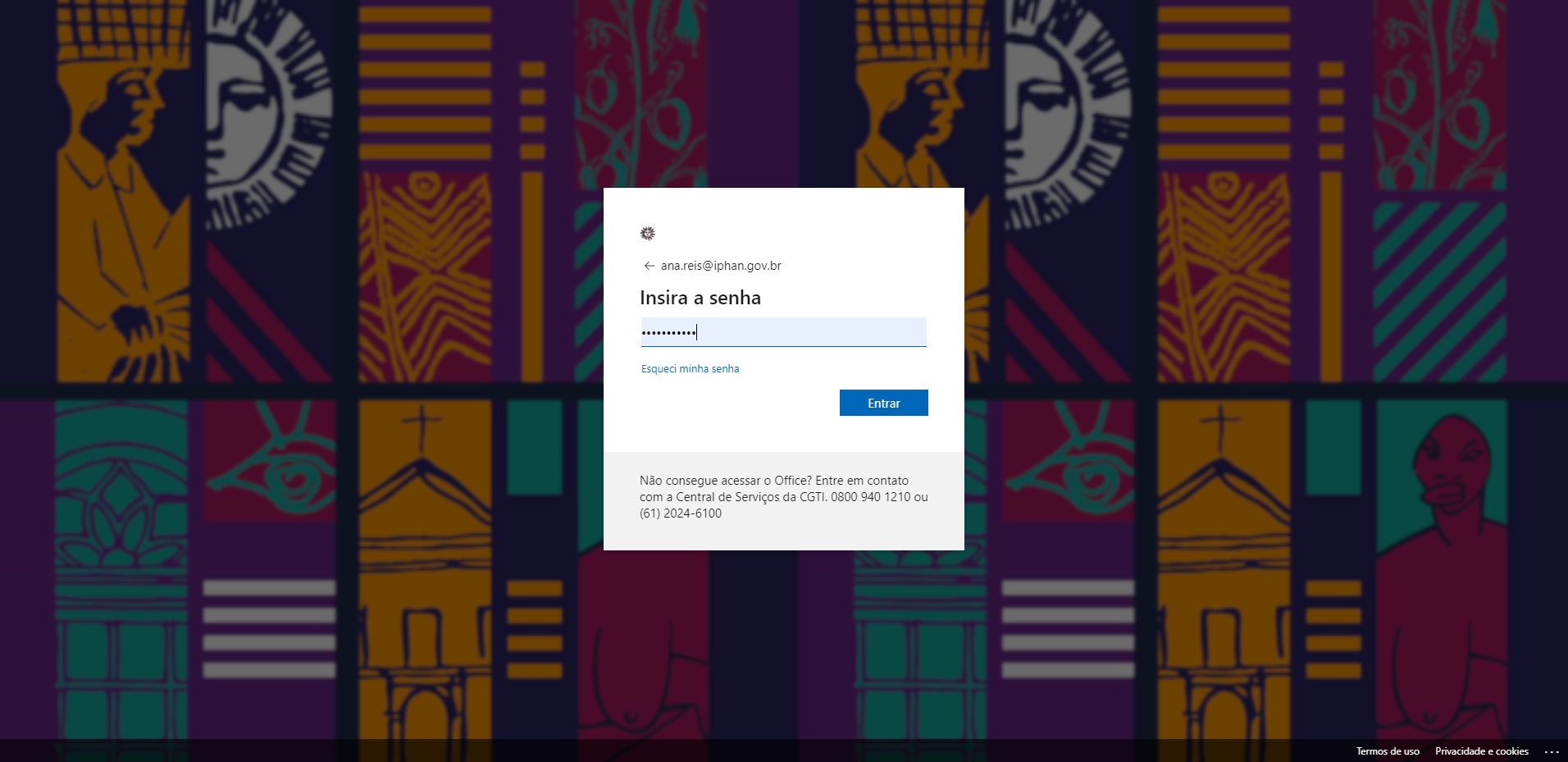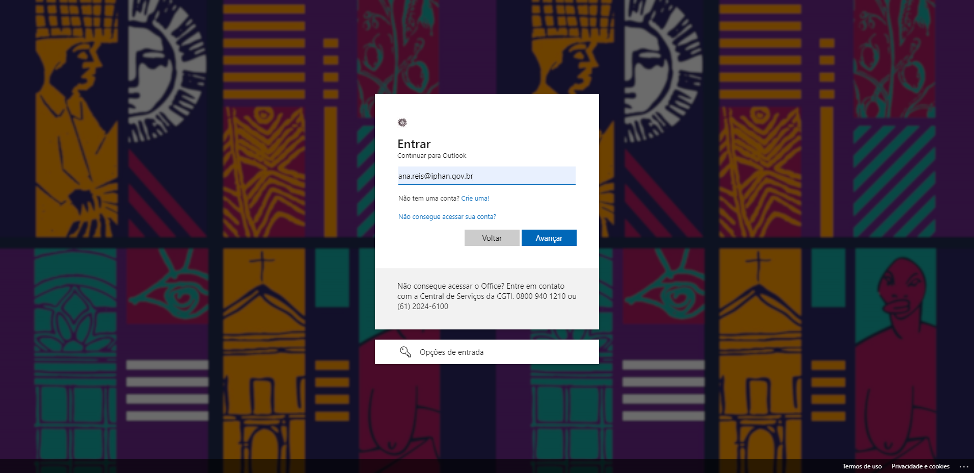 Informe o seu e-mail@iphan.gov.br e clique no botão “avançar”